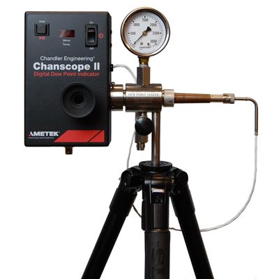 The Chanscope II is a rugged, portable instrument for measurements of the moisture (water) or hydrocarbon dew point temperature of any gas, and is frequently used to verify electronic hydrocarbon and water dew point analyzers. A user-friendly dew point tester that is easy to maintain and operate, it displays the temperature above the illuminated mirror, making it simpler for the operator to determine results.