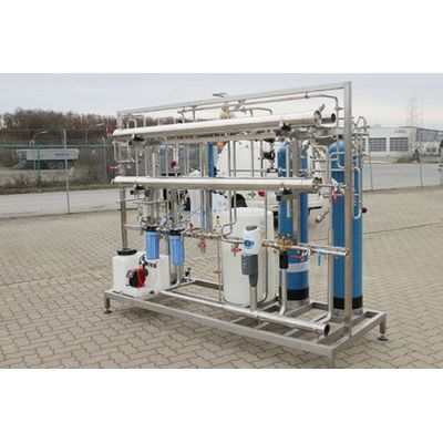 Therewith a production plant for ultra pure Aqua Purificata is available without any application of chemicals and low energy consumption.