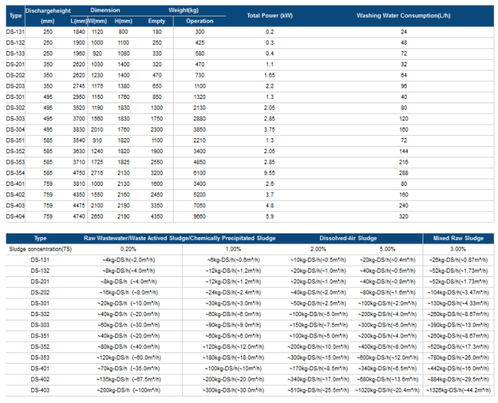 - Primary sludge and biological sludge dewatering
