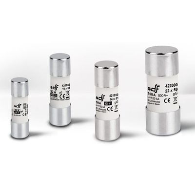 The range comprise fuse-links of sizes 8×32, 10×38, 14×51 and 22×58 with rated currents comprises between 0,5A and 125A. Available in standard version and with visual fusing indicator. For sizes 14×51 and 22×58 also available in striker version intended for use in fuse holders with microswitch.