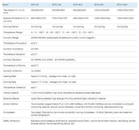 The temperature humidity test chambers use imported temperature controllers to control temperature and humidity. Programmable controllers can be used to set a variety of parameters. The temperature and humidity are directly displayed digitally, and the operation of the constant temperature test chamber is convenient.