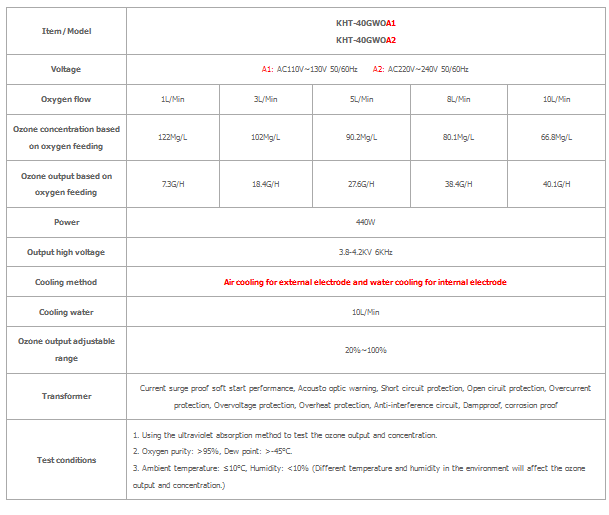 - Ozone decrease is lower than 5% if work for a long time, while life time is more than 20,000 hours.