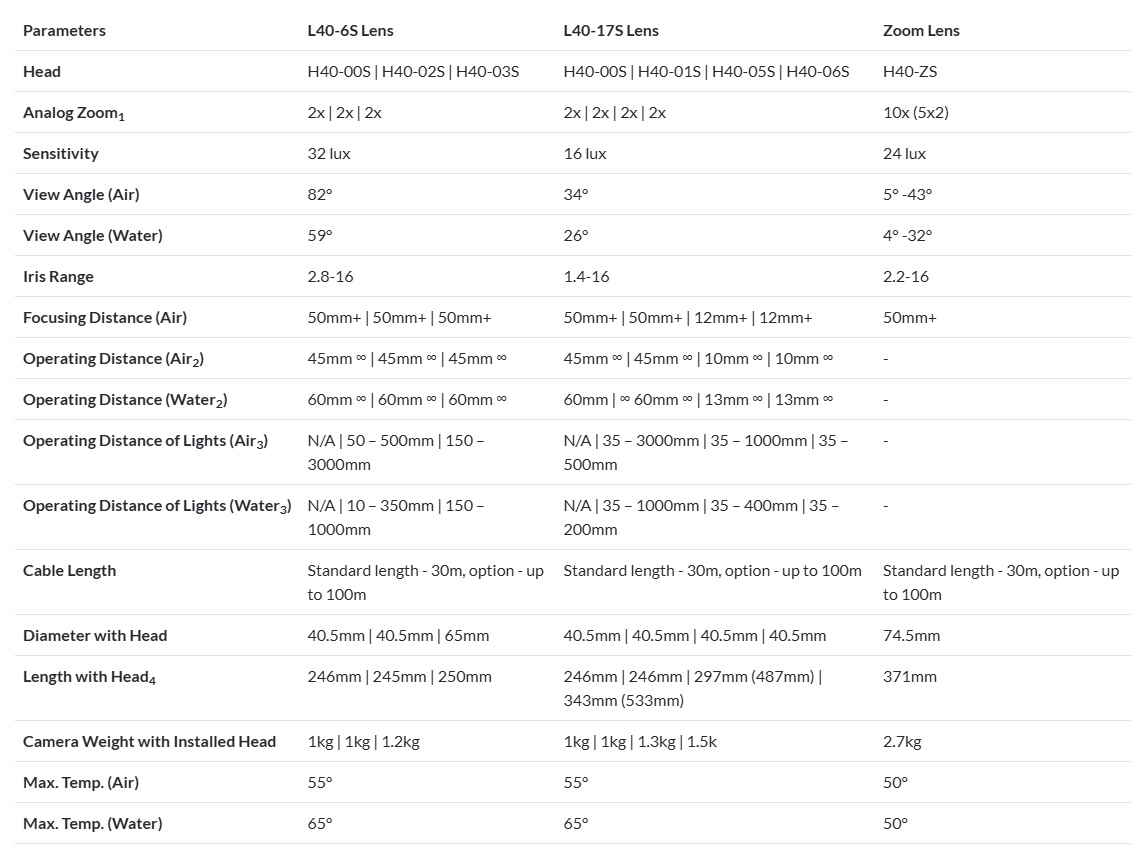 Unlike bulkier shielded cameras, the D40’s optimized split-head design makes it exceptionally condensed and naturally radiation resistant. Minimal electronics are inside the camera, as most components are housed in the topside Camera Control Unit (CCU).