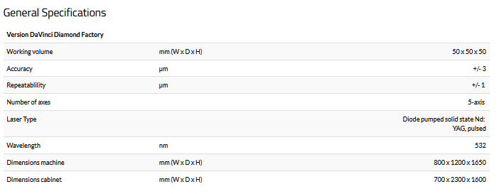 "DaVinci Diamond Factory" is an automated laser cutting and shaping system for diamonds. Rough diamonds can be transformed into brilliant cut diamonds with up to 57 facets in a single process. The DaVinci system also allows fancy shaping.