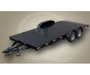 General Duty models upgrade to a 5″ channel main frame with 4″ channel wrap-around tongue and 3″ channel crossmembers. Running gear is spring suspension 3,500 lb. axles with 4-wheel brakes and radial tires. The ramps are 5′ long and slide in to tracks from the rear of the trailer. A standard 4′ dovetail, a full diamond deck, rubber mounted sealed beam lighting, and skip reflective tape are standard. General Duty models are available in 16′, 18′, and 20′ lengths in 7,000, 8,000, and 10,000 GVW ratings.