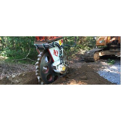 Antraquip offers carbide rockwheels and diamond saw attachments for excavators of all sizes and various applications. Antraquip's carbide rockwheels offer a cutting solution for soft to medium hard rock and concrete cutting applications with a minimum width of roughly 2 inches (50mm) while the diamond saw rock wheel offers a cutting solution for hard rock that other mechanized methods of cutting simply cannot handle. The diamond saw rock wheel attachments, also known as the AQD Series, can cut the hardest rock including granite, basalt, etc. as well as reinforced concrete.