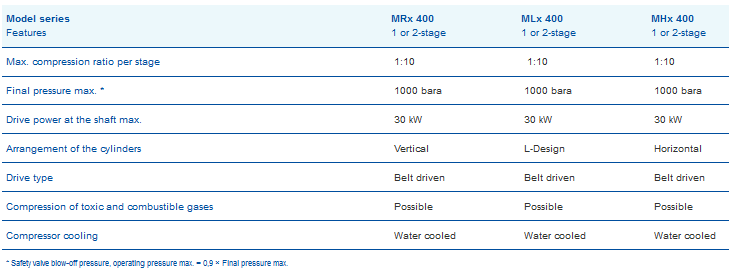 Compressors of the MRx / MLx / MHx 400 series can be designed in one or two stages.