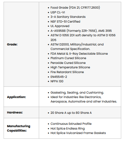 - Food Grade and FDA Grade (FDA 21, CFR177.2600) to USP CL-VI Compound, 3-A Sanitary Standards