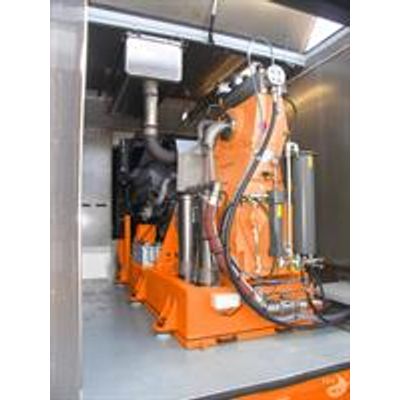 The CD550 range of water-blasters and water-jetting machines goes from 1000 to 2000 Bar with pump flows from 100 to 210 L/min. The pump are driven by an 8 cylinder water cooled Turbo charged intercooled Common Rail DEUTZ diesel engine and the 14” container is sound proofed, primed and painted for corrosion resistance and appearance. The container is available in DNV 2.7-1 approved versions. The machines are completely self contained with fuel tank of 1250 Liters. All models are CE marked. Optional flameproofing complying with Zone II, or Norsok Z-015. Optional DNV 2.7-1 approved container.