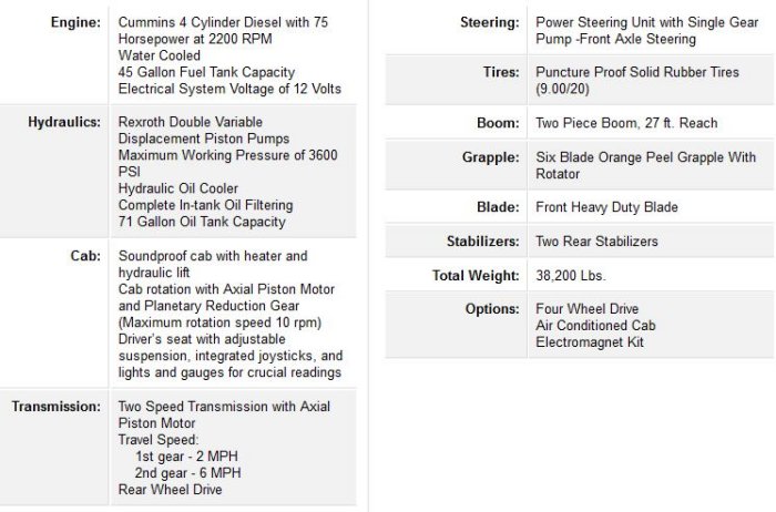 Sierra - Model T308 -Diesel Material Handler Crane