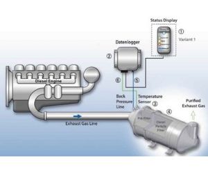 If the vehicle is operated at sufficient load (250-350°C), the filter system regenerates solely passively (catalytic filter coating). The injection of fuel is not necessary at that point. The filter will be charged with soot particles at lower load operation and the backpressure increases. At a specific backpressure level (e.g. 80mbars/free-adjustable), the ECU automatically activates the fuel injection and starts the filter regeneration. The pre-filter oxidizes the injected fuel catalytically and this reaction heat raises the exhaust gas temperature up to 500°C.