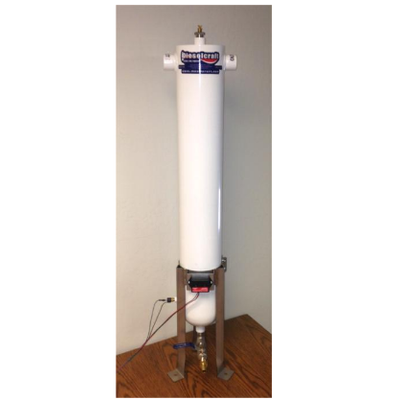 For Stationary Diesel Pumps, Generators and Equipment with Engines from 600 to 1500 Horse Power or Pumps from 4 to 8 GPM. The Dieselcraft Fuel Purifier is a simple one step unit that removes 99% of the water and 95 to 98% of heavy particles. Unlike all other products on the market, the Dieselcraft Fuel Purifier performs its function without the use of a replaceable, changeable or cleanable filter element. This is the ONLY unit with a bed of activated alumina to help remove water and contamination. Removing the contamination immediately before the fuel enters the engine`s fuel system, the Dieselcraft Fuel Purifier delivers cleaner fuel, greatly reduces filter clogging by reducing bacterial growth and therefore extending maintenance intervals.