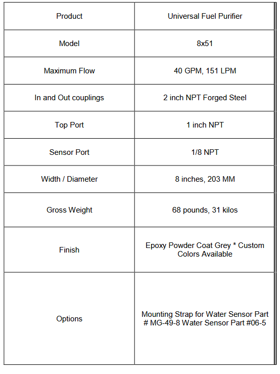 Dieselcraft - Model 8X51 -Fuel Purifier