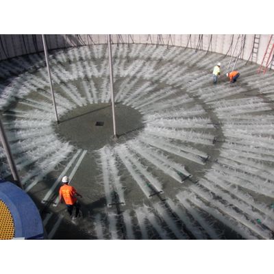 The AEROSTRIP diffusers can be laid out in a very efficient manner and can be designed to avoid all existing obstacles. Existing piping for coarse bubble and tubular diffusers can be utilised for substantial savings, as the 0.75 in fittings can be used to connect the new strip diffusers. The smaller the bubble size, the better the mixing for a given airflow. Mixing typically requires 1.3 to 1.8 Nm3/hr/m2 floor area (0.07 to 0.1 scfm/ft2 floor area) with floor-mounted AERSOTRIP diffusers.