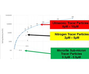 Microrite’s Tracer Particles have a Very Low Settling Velocity compared with Water CO2 or Nitrogen Based “Cleanroom Foggers”