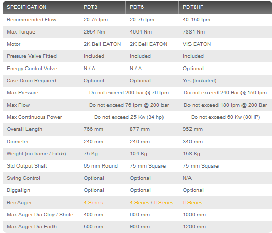 Digga`s 2 speed drilling auger drives for standard flow machines have been designed for a wider range of applications. Offering a high speed, low torque setting for the smaller auger jobs when you need that extra RPM, and low speed, high torque for when you really need to grind out that larger diameter hole. It`s like having 2 drive units in 1.