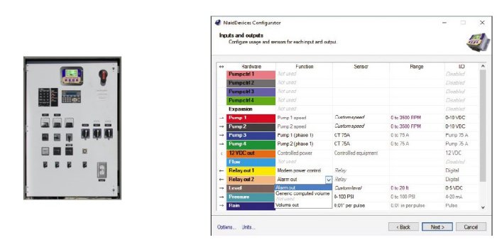 - 4 motor inputs are used for a mix of RPM inputs from VFDs and current clamps. They are used to monitor pump operations, evaluate power consumption and pump speed.