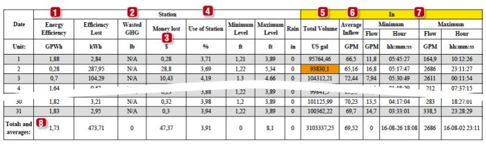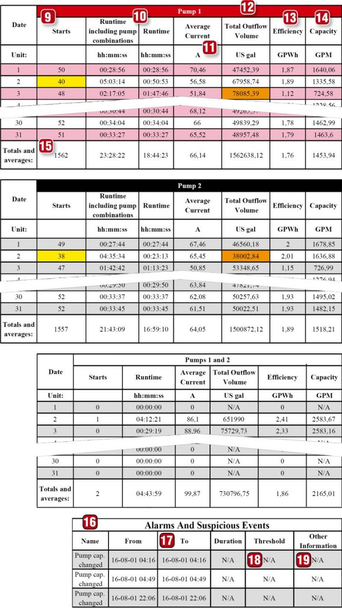 4. % of use of the pumps compared to their combined capacity