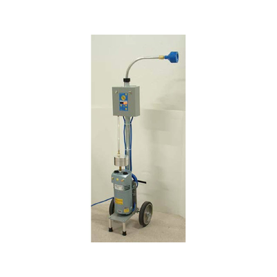 The DF-34ME Air Sampler includes an oil-less, carbon vane vacuum pump with a constant airflow regulator for use where a nearly constant airflow is desirable. The regulator holds a constant pressure drop across an in-line orifice by varying the flow through a bypass valve into the pump. This system allows the pump to work at a minimum pressure drop at all times, permitting it to run cooler, thus extending its lifetime. The oil-less pump requires no lubrication to maintain optimal efficiency during its service life. The pump is mounted on a mobile cart with two rubber wheels to permit mobile transportation of the unit.