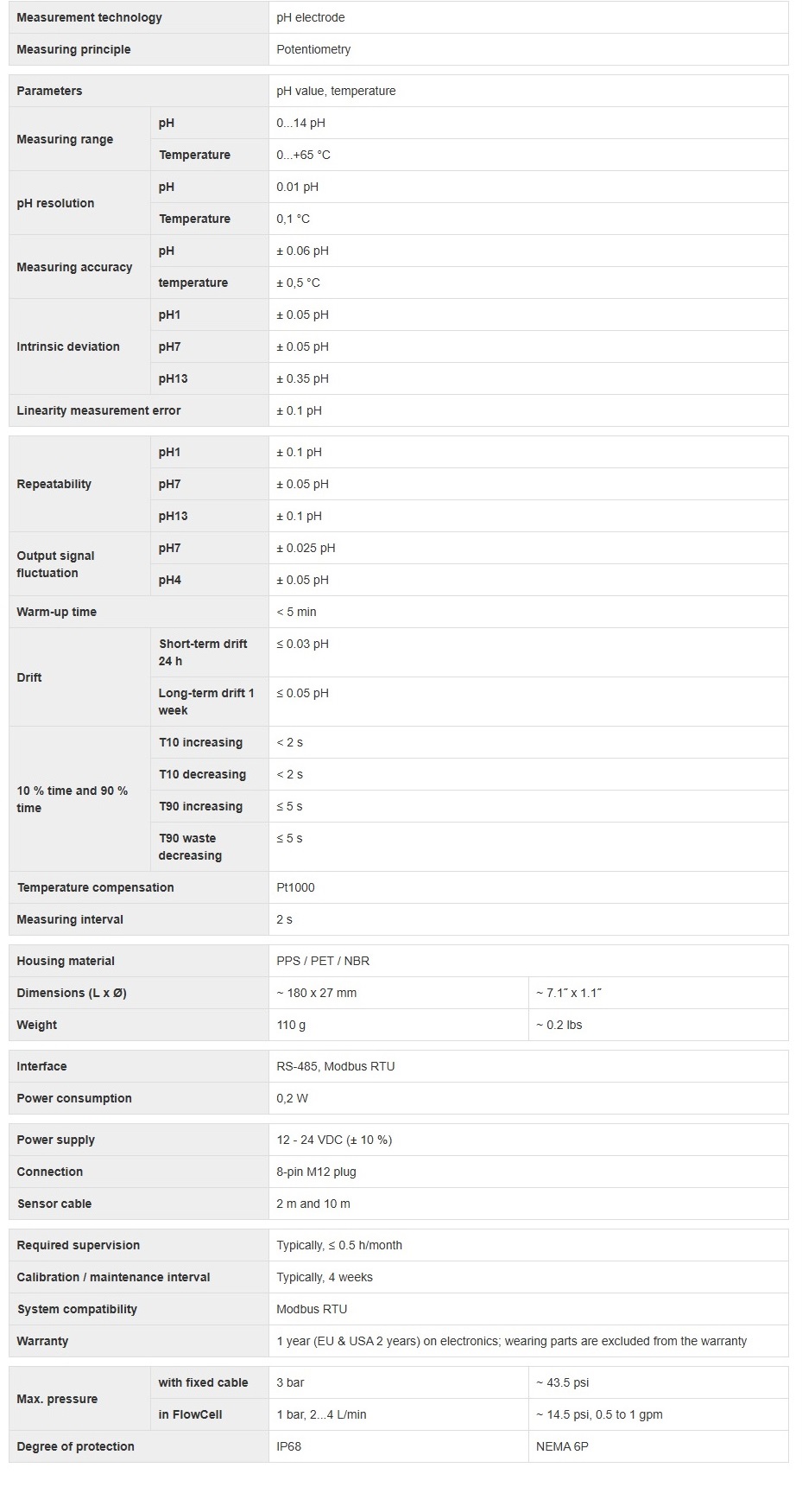 eCHEM pH immersion-sensor digital with M12 cable. Robust digital pH sensor for operation on TriBox controllers. Digital communication ensures safe and trouble-free signal transmission from the sensor to the controller. The high-quality gel pH electrode has a porous HDPE diaphragm and is insensitive to dirt, making the sensor ideal for wastewater applications. TpH is available with a 10 m or a 2 m fixed cable.