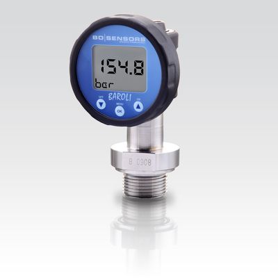 The BAROLI 05P enables a local displaying of values in applications, where high requirements on hygienic process connections and easy cleaning or sterilisability are requested. The filling medium is food compatible oil with FDA approval. The display housing is rotatable, thus ensuring an easy reading even under unfavorable mounting conditions. Additional functions as changing unit, displaying min / max values, calibrating of offset and span, as well as configuring the automatic switching-off complete the profile.