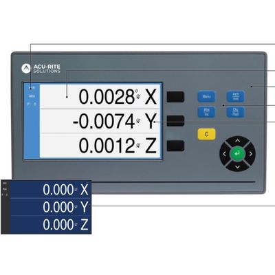 The Acu-Rite Solutions DRO100 is an affordable digital readout for greater machine tool accuracy and efficiency. Backed by the continuous innovation of HEIDENHAIN, it eliminates the need for manual calculations on machine tools with up to three axes.