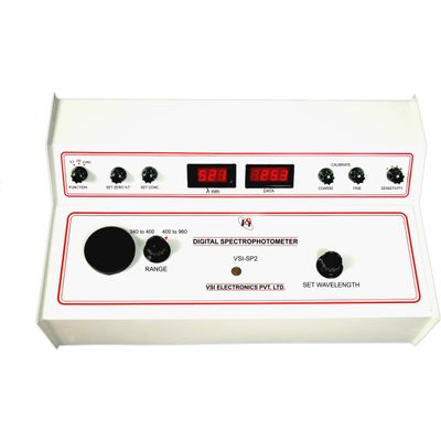 We are one of the leading manufacturer and supplier of Spectrophotometers. The Digital Spectrophotometer (VSI-SP2) with wavelength resolution of 1nm., is an economical, reliable, rugged and most accurate instrument for Spectrophotometric Analysis of any concentration. The output is available in terms of Optical Density, Percentage Transmission and Concentration. The wavelength is displayed on a 3 digit LED display.