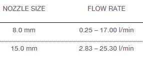 - high flow rates