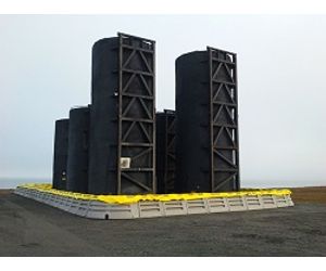The innovative Poly Dike MPE design allows all system components to be nested and stacked. The system sets up quickly and easily with NO special tools or lifting equipment required. In addition, the Poly Dike MPE is not secured to the substrate, so it is perfect for long term or temporary use in parking lots, sand, rocky soil, muddy soil, frozen soil or on concrete areas. Despite the ease of assembly and site flexibility, the rugged Poly Dike MPE can easily absorb the impact of a catastrophic tank failure without loss.