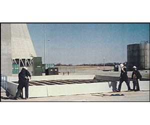 MATERIAL: Premium fiberglass mat and industrial grade isophthalic or vinyl ester resin as manufactured by Ashland Chemical or equivalent are used in construction. A gel coat surface resin of equal chemical resistance, with the additive antimony trioxide for flame retardance and U.V. protection is included. The flame spread rating is Class II. Tested by ASTM E-84.