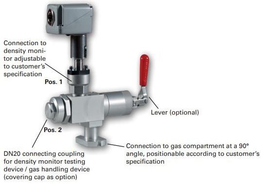 For separating the density monitor from the gas compartment just screw on the separate lever and turn it by 180°.