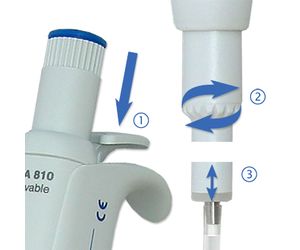 No volume setting required when pipetting 1 mL and 0.1 mL. Both volumes are pre calibrated at distinct stops along the same plunger stroke. To increase flexibility, it is possible to use any one or both volumes when performing dilutions.