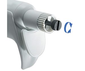 Posizionato secondo i migliori criteri ergonomici, il grande pulsante espulore ammortizzato garantisce un`attivazione senza forza. In aggiunta al comfort di rilascio del puntale, il sistema di regolazione in altezza dell`asta, chiamato JustipTM - controllato da efficienti arresti a scatto - permette di scegliere fra un`ampia serie di puntali da applicare sull`ugello.