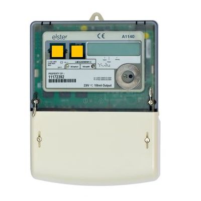 The Elster A1140-D is direct connect (max 100A) three phase smart meter. The A1140 includes a GPRS communications modem and a network roaming SIM for automatic meter readings on Openmetrics.