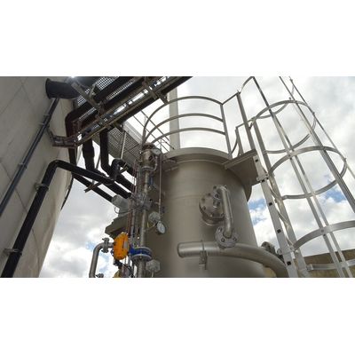 In the direct-contact water (or wastewater) heater, there is direct contact between the flame, flue gasses, and the water that needs to be heated up. This unique technology is more energy efficient than the traditional water heater or boiler, where there is no contact between and flue gasses. Thanks to that in DWS unit, condensation heat can be used with an efficiency of > 100% calculated to the lower heat value (lhv).