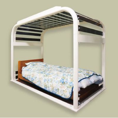 Disaster-prevention bed frames ensure a safe space with a steel frame even if a wooden house collapses due to an earthquake. A bed can be placed inside to protect life and reduce damage in the event of a disaster while sleeping. It can be installed within the existing house, while living in it, and in a shorter period of time than seismic retrofitting.