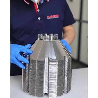 The disc stack provides additional surface settling area, which contributes to speeding up the separation process dramatically. It is the particular configuration, shape and design of these plates that make it possible for a disc stack centrifuge to undertake the continuous separation of a wide range of different solids from either one or two liquids.