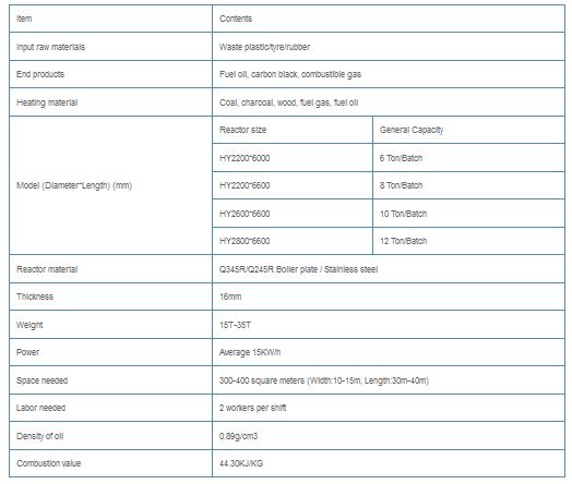 Plastic pyrolysis is: the process of converting waste plastics into industrial fuels like Plastic Pyrolysis Oil, Carbon Black and Hydrocarbon Gas. Plastic pyrolysis involves subjecting plastic to high temperature of 400 to 450 degree Celsius, in absence of oxygen. In case of oxygen is present plastic will start burning. During pyrolysis plastic breaks down into smaller molecules of pyrolysis oil, pyrolysis gas and carbon black. Pyrolysis is a great way of recycling large amounts of plastics. This plant can also used for waste tire recycling. End products of waste plastic/tyre recycling to fuel oil pyrolysis plant:
