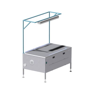 The Dismantling Table is a ventilated work station adapted for dismantling flat panels, either as a stand-alone unit, or in combination with an FPP60 Flat Panel Processor. The DMT is designed with open sides for the operator to easily be able to rotate a screen at the work surface, and for safe dismantling of fluorescent lamps in LCD screens.