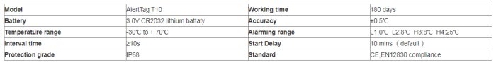 AlertTag T10 Temperature Indicator is a cost-effective and single use temperature indicator with LCD Display designed for pharmaceuticals. It records and monitors the temperature data at every step during transportation of up to 180 days duration. AlertTag T10 Single Use Temperature Indicator with LCD Display is a disposable electronic temperature indicator used for monitoring temperature sensitive products during transport, storage and handling in the cold chain logistics. For temperatures between -30°C and +70°C, up to 4 different alarm settings are programmable. When the surrounding temperature exceeds the preset temperature, the corresponding alarm point 1, 2, 3 or 4 will be displayed on the screen to alert. This indicator is mainly developed for the pharmaceuticals industry, including vaccine, protein or any temperature sensitive products shipment monitoring, but it can also be used for temperature monitoring of fruits, vegetables and produce.