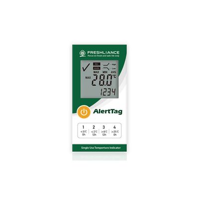 - AlertTag T10 LCD Disposable Temperature Monitor/Indicator is a disposable electronic temperature indicator for monitoring temperature-sensitive products during cold chain logistics transportation, storage and handling. For temperatures between -30°C and +70°C, up to 4 different alarm settings can be programmed. When the ambient temperature exceeds the preset temperature, the corresponding alarm point 1, 2, 3 or 4 will be displayed on the screen for alarm.