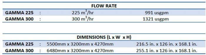The Gamma flotation units are designed to treat wastewater with light to medium solids loading and very high flows. The capacity of the Gamma units range from 990 usgpm to 2425 usgpm (225 to 600 m3/hr). The Platepack System multiplies the separation surface for effective separation, making it possible to treat a large amount of wastewater in a small footprint. The solids float to the surface and are collected by the sludge rake mechanism and transported to the sludge hopper with a low friction scraper system. The collected sludge is transported with a sludge pump to a sludge tank or dewatering.