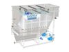 The system is based on the counter-current flow principle, through an inclined corrugated plate pack. Water is introduced into the system in a cross-flow configuration which effectively reduces the distance that solids have to travel to be separated effectively. Within the compact separator, a thin layer plate pack has been installed to obtain a maximum separating surface area. The separation velocity is determined by the flow (Q) and the effective plate surface (S), therefore particles which achieve a higher rising velocity (by micro bubble aeration) than the overflow rate (Q/S), will be separated.