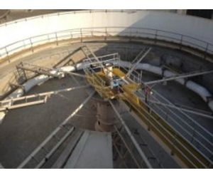 Dissolving efficiency of the pressurization tank provides 80 percent or greater saturation. The tank is specially designed to reduce the exit velocity of the pressurized recycle flow to ensure that all free air is removed from the liquid prior to leaving the tank. This feature ensures that turbulence caused by large bubbles is reduced and that the micron-sized bubbles form properly. In accordance with Henry’s Law, more air is dissolved into a given volume of water at increased pressures. A 65 psi system requires less recycled water and produces smaller air bubbles than those operated at lower pressures. Recycled water serves to transport dissolved air to the flotation unit. Minimum recycling reduces hydraulic loading and turbulence, increasing the amount of treatable liquid that can be introduced in a given tank, thus reducing the cost capital and operating costs.