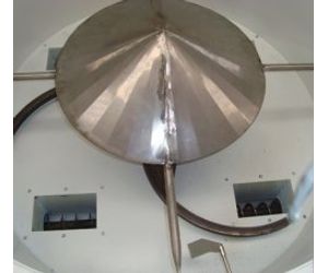 Inside the chamber is a conical diaphragm which ensures an even flow of product toward the screw feeders.