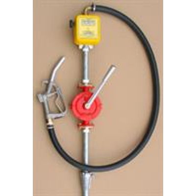Pumping unit complete with EXCELSIOR hand pump, 1 mt rigid suction tube, bung adaptor, mechanical flow-meter, flexible delivery hose 2 mt long and manually operated trigger nozzle.