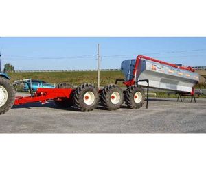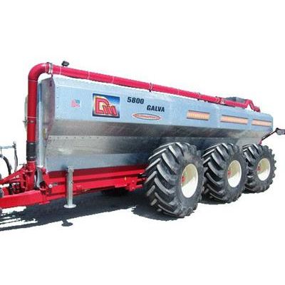 The DM Spreader is powered by a front installed turbine which can be adapted to P.T.O 540 or 1000 rpm.(optional Hyd.) Input shaft is enclosed in a oil bath housing. An optional flow control recirculating valve can be installed permitting various rates on the go to the rear of spreader or for full in tank agitation.