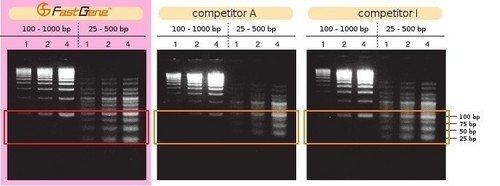 - Sharp and well defined DNA bands, even for small products