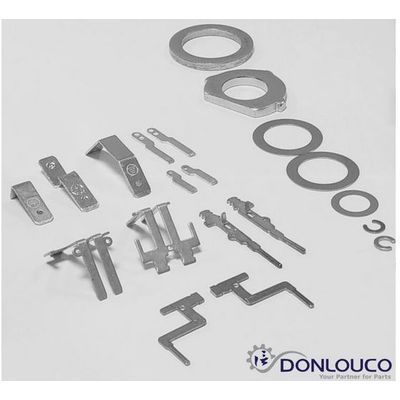 Precision punched parts to extremely high tolerances including dimensions, flatness and thickness. Fine blanking on some parts. Basic stamped parts with symbols and lettering on surface.