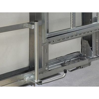 Extendable hold arm (galvanised steel) with rubber buffer at the tip, already mounted on the floor assembly, high retention force.